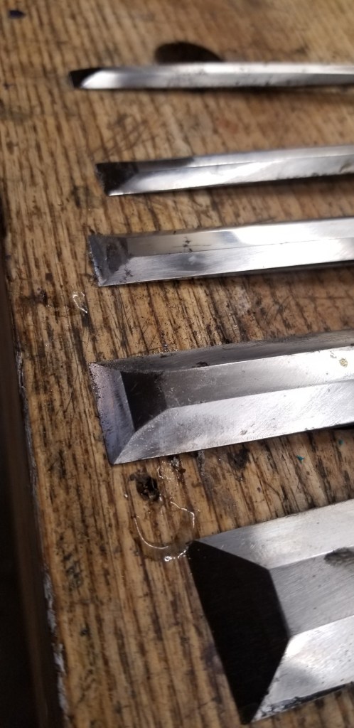 Please keep in mind, I don’t have enemies in the hand tool world. This isn’t a whole big attempt to bend opinion toward some aspects with a grand plan to release chisels that look like the ones I prefer above. I make chisels, but I don’t make chisels for sale – I want to be a maker, but not limited to marketing something. Making things and making them well gives you an understanding of what’s out there and when you finish grind a few dozen warped chisels, you get the sense why manufacturers may not love water hardening steel, or even to a lesser extent, O1 steel. O1 is more stable, and hardens more easily, but it still requires more follow-up grinding than air hardening steels like A2 or V11.