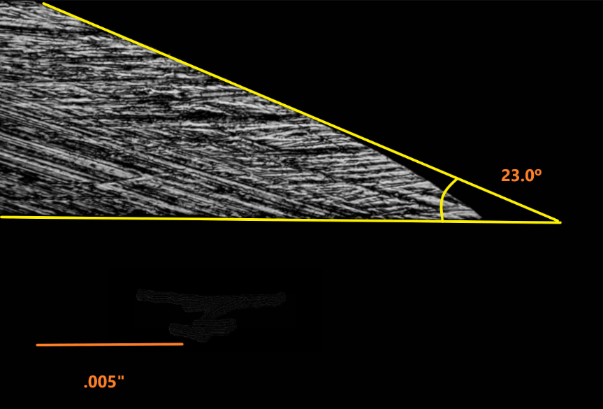 And when you start to separate the very tip of an edge where you want to stop damage from the rest, you see this all over the place. On a straight razor, we use a linen and strop. The pair modifies the edge just enough to prevent damage and you can shave for a year every day with little edge degrading and hone on your finest stone for five minutes at the end of the year and avoid all of the nonsense that’s propagated on razor forums with honing away a good razor and ending up with something that performs less well in the process.