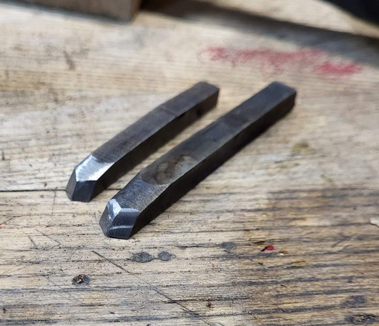 I don’t know that there’s much to read about making rasps. First is on the right, second on the left and third in the middle. They’re each a bit different but it’s safe to say I was still figuring out how to shape the gravers and what angle to hold them and how to not misstrike them and break the beak off on the curved side. A zillion tiny teeth sort of settled it at once. They’re hardened, and they work. And not reading a ton about it allows for finding what’s not so great.