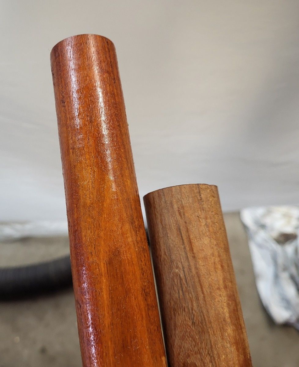 Darker on the left is the varnished cylinder, and on the right is just raw wood.