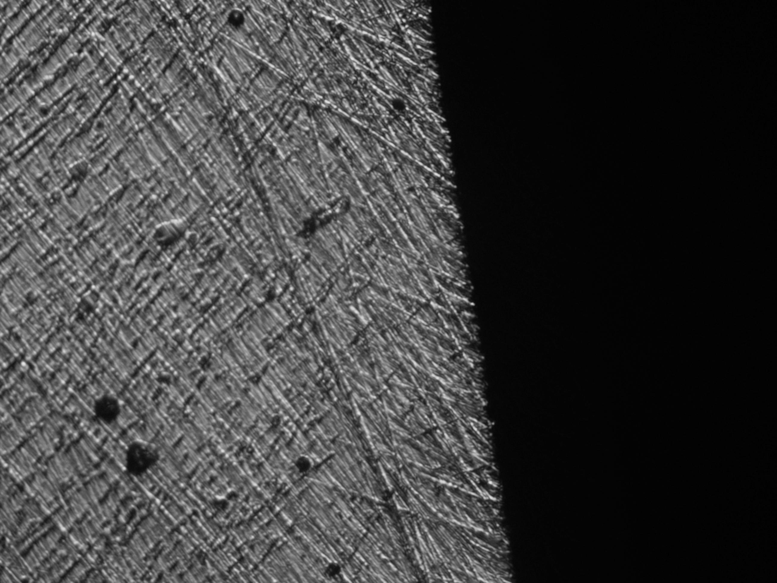 It’s kind of hard to judge that this looks like, but the nature of the stone is it’s touch sensitive. The flat area is bright polish – brighter than 8k. The edge as I see it has no foil without buffing or stropping, just light teasing off of the burr, but it does also not look terribly fine. Just really fine, and it shave shair, but by the polish and the tiny burr, I expected more.